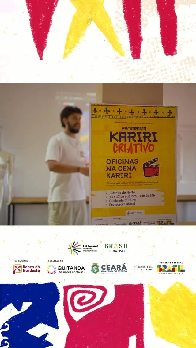 Apresentado pelo Ministério da Cultura através da Lei Rouanet, com patrocínio do Banco do Nordeste e realização do Governo do Ceará via Secretaria da Cultura, em parceria com a Quitanda Soluções Criativas, o Kariri Criativo propõe um modelo inovador, inclusivo e enraizado na diversidade cultural.