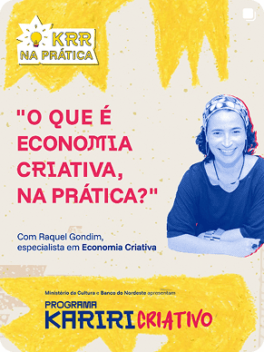 O Programa Kariri Criativo é uma iniciativa transformadora que impulsiona a economia criativa na Região Metropolitana do Cariri, no sul do Ceará. Com um olhar atento à identidade local e ao potencial cultural e criativo do território, o programa promove a mobilização, qualificação e integração de agentes culturais e criativos, gerando oportunidades e estimulando o desenvolvimento sustentável.